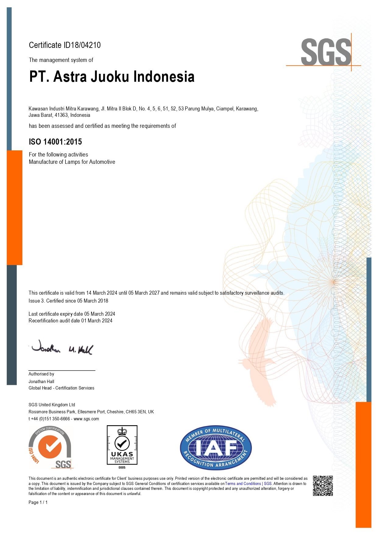 Didirikan pada tahun 2012 di kawasan industri Mitra Karawang. PT. Astra Juoku Indonesia merupakan hasil kerjasama antara PT. Astra Otoparts Tbk dengan Juoku Technology Co., Ltd ( Taiwan ) dengan kepemilikan saham masing-masing 50 persen. PT Astra Juoku Indonesia bergerak di bidang manufaktur lampu untuk kendaraan roda empat, kendaraan roda dua, kendaraan agrikultural, dan alat berat. Prioritas kami adalah mencapai kepuasan pelanggan, lingkungan kerja yang aman, baik, dan sehat, tanggung jawab sosial perusahaan, dan bermanfaat bagi para pemangku kepentingan.